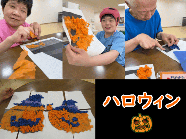 お花紙を丸めて、台紙に貼りました(*^^*)