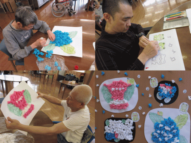 日中活動で、あじさい作りをしました♪