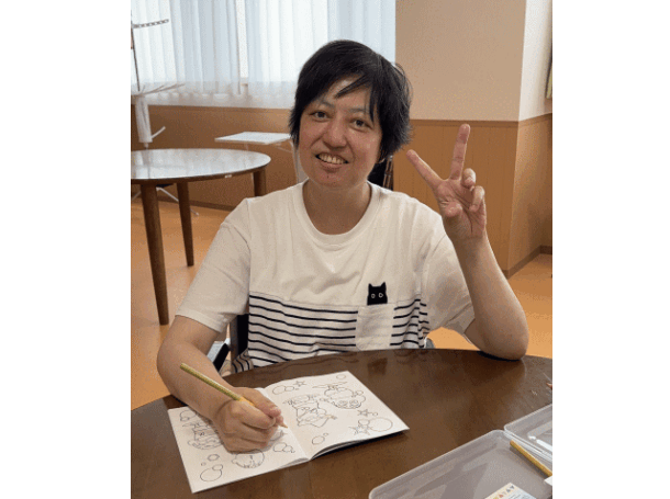 塗り絵をしたり、施設内を散歩したりして過ごしました。