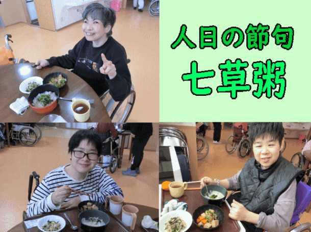 1月7日の昼食に、七草風粥が提供されました♪ ちなみに副菜は、高野豆腐の煮物、 ほうれん草の香味和え、みかんです☆ 今年1年、元気に過ごせますように°˖✧ ※写真の公開には予め了承を得ています。
